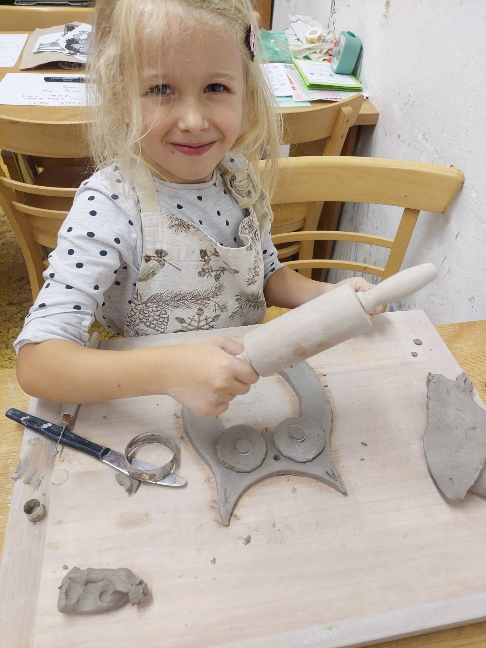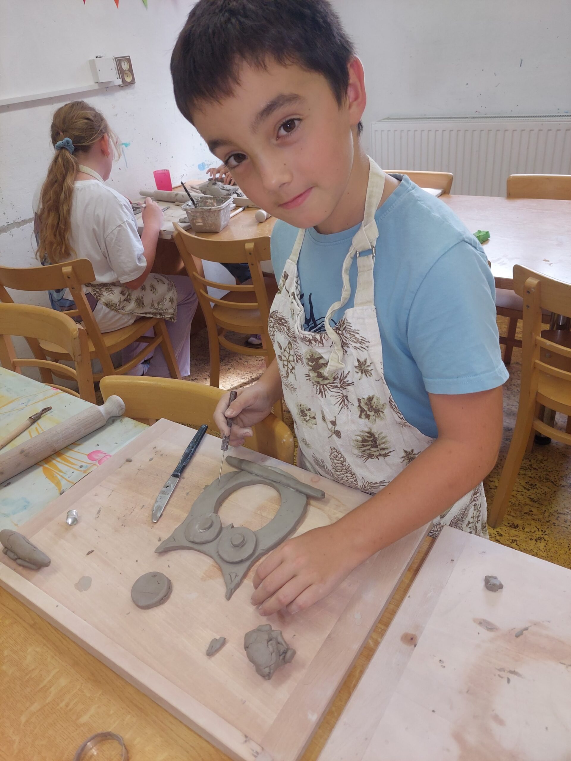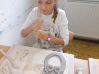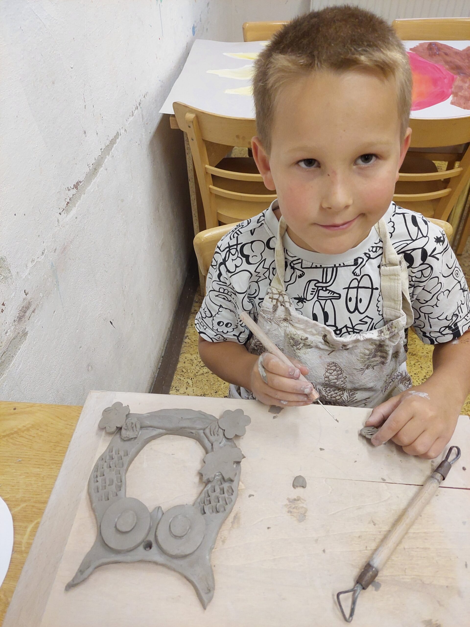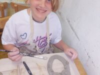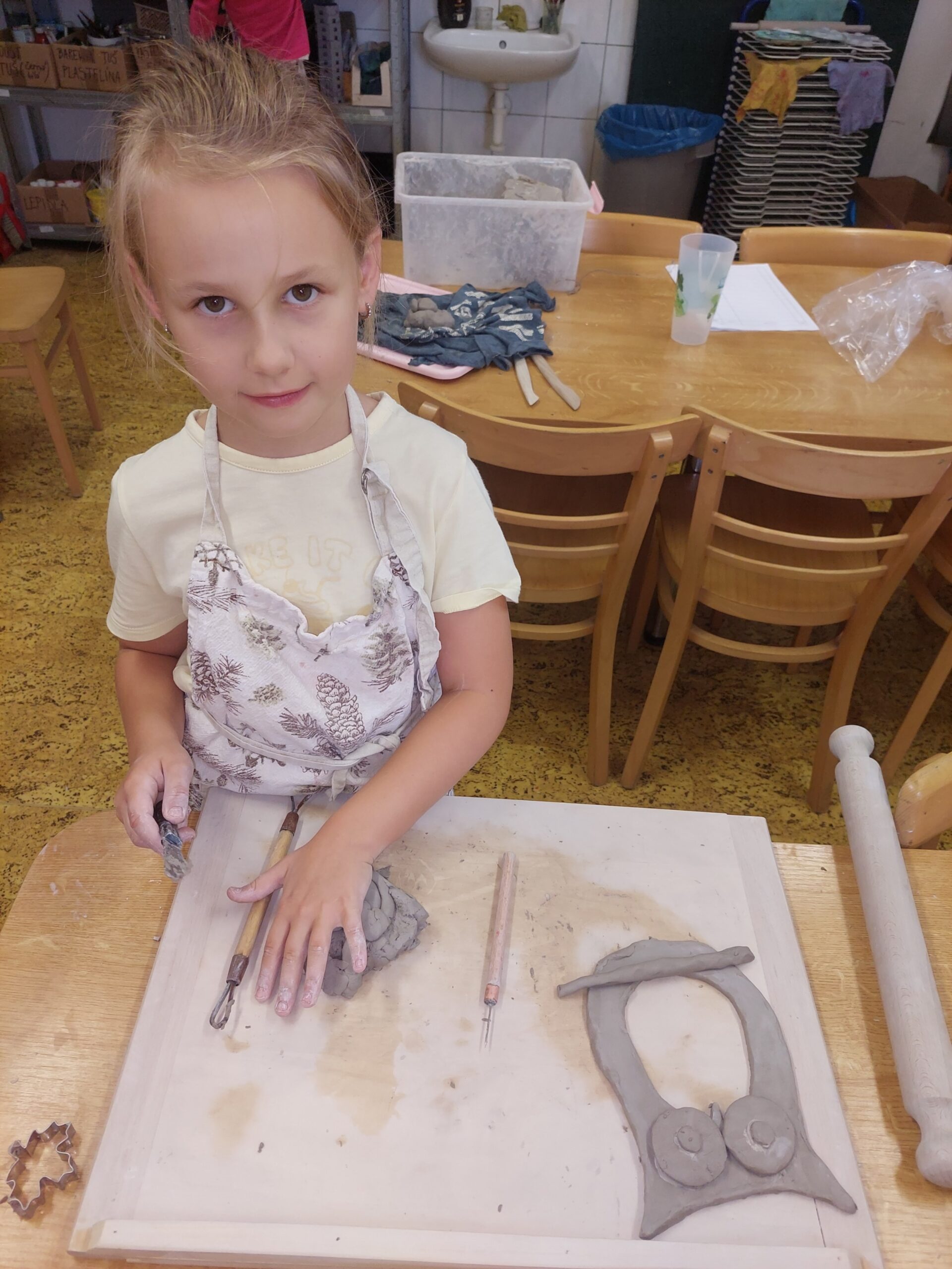 V našem keramickém kroužku vládne radostná a tvořivá atmosféra, která děti motivuje k objevování nových dovedností. Keramika u nich rozvíjí fantazii, trpělivost, jemnou motoriku i cit pro estetiku. Ani v keramice děti nezahálí a už mají vyrobené své první výrobky. Nyní čekají, až jejich výtvory vyschnou a projdou prvním výpalem v peci. Poté se děti pustí do glazování, při kterém své keramice dodají barvy a lesk. Už teď se všichni těší, jak budou hotové výrobky vypadat!