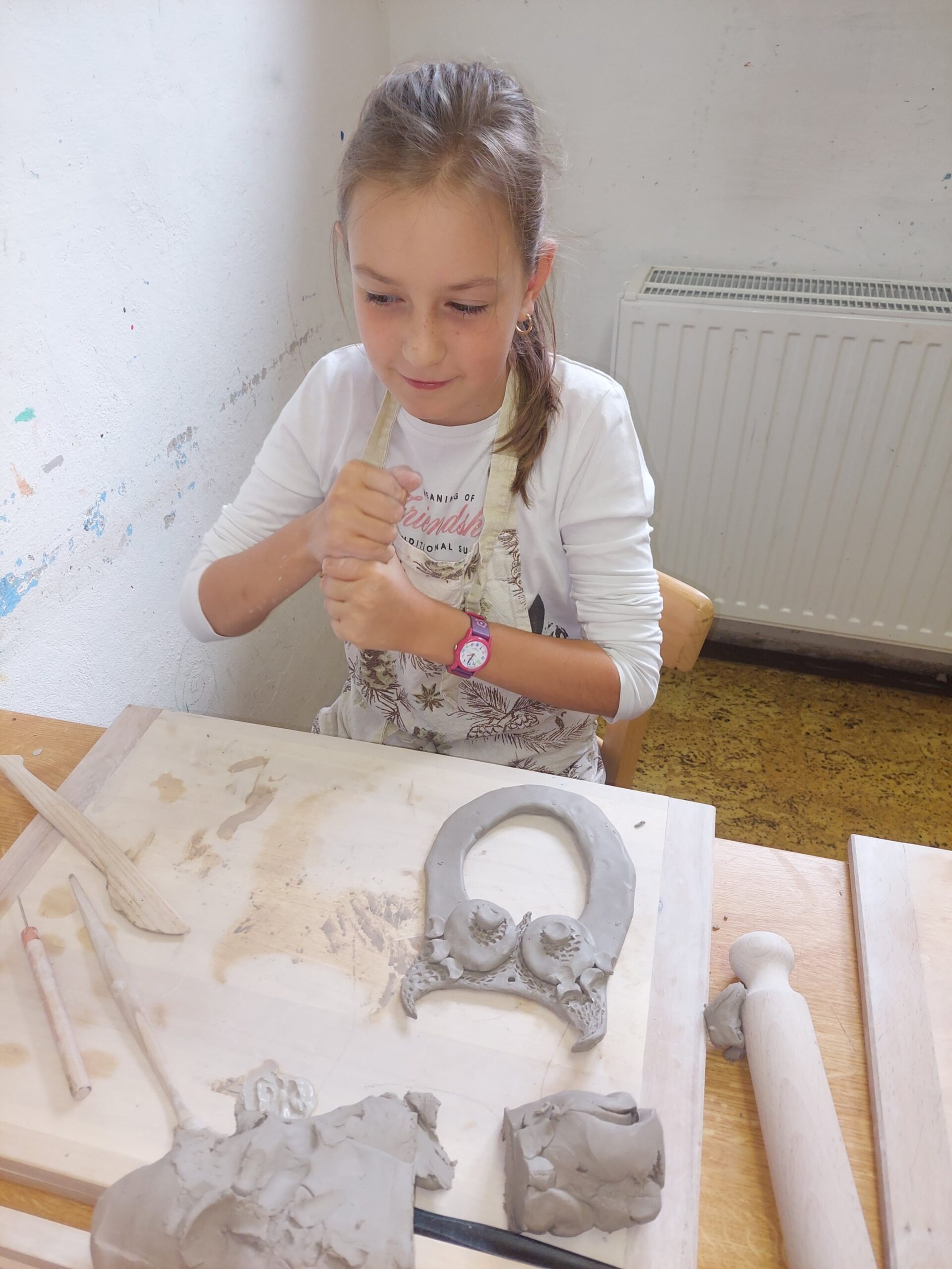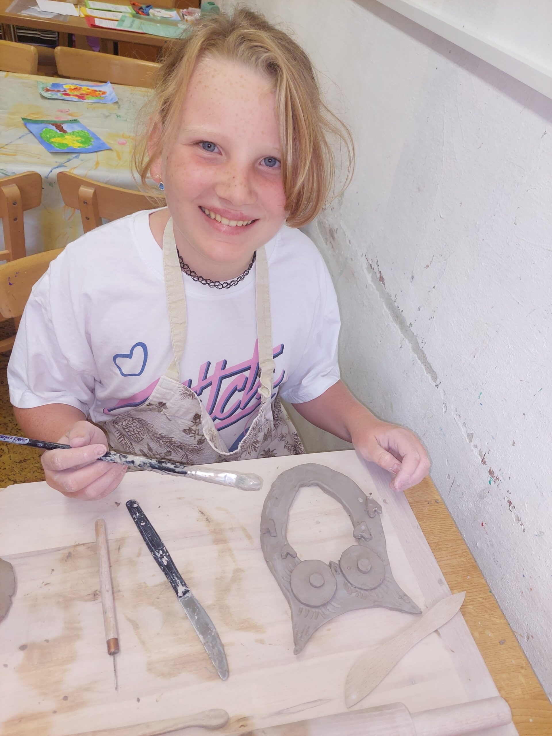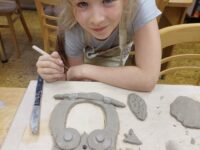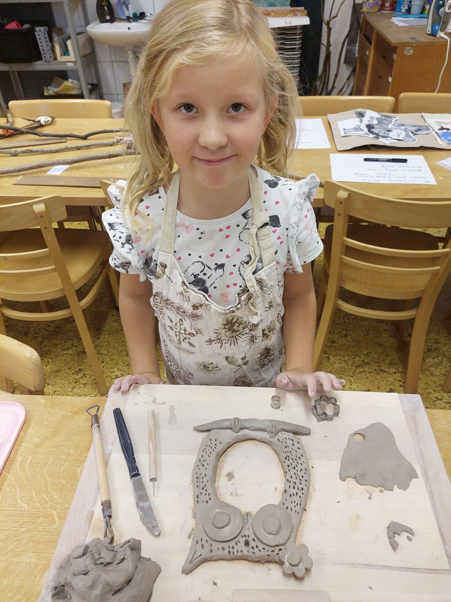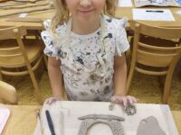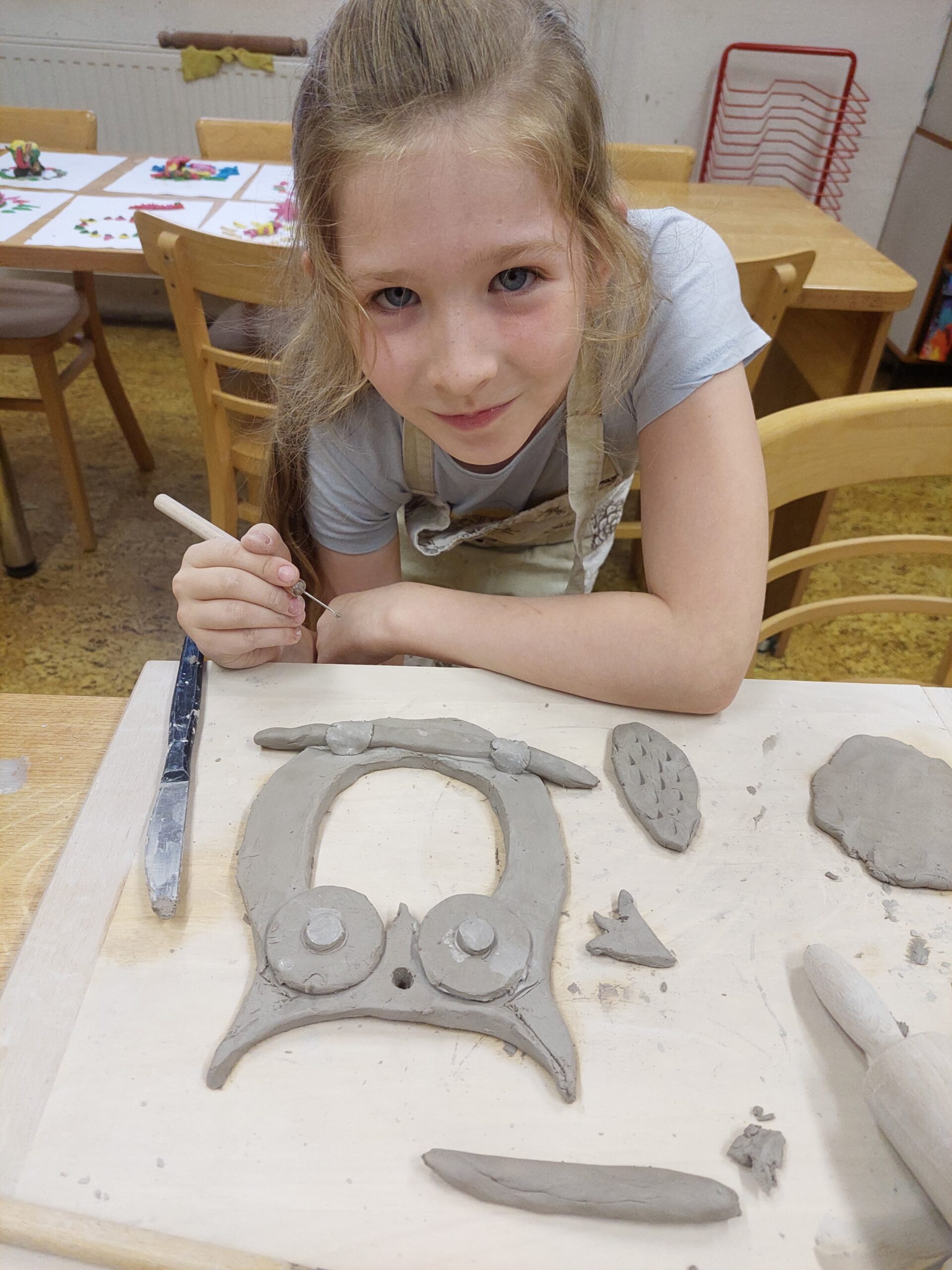 V našem keramickém kroužku vládne radostná a tvořivá atmosféra, která děti motivuje k objevování nových dovedností. Keramika u nich rozvíjí fantazii, trpělivost, jemnou motoriku i cit pro estetiku. Ani v keramice děti nezahálí a už mají vyrobené své první výrobky. Nyní čekají, až jejich výtvory vyschnou a projdou prvním výpalem v peci. Poté se děti pustí do glazování, při kterém své keramice dodají barvy a lesk. Už teď se všichni těší, jak budou hotové výrobky vypadat!