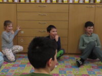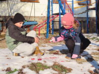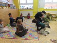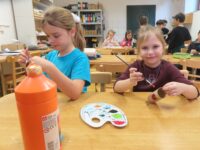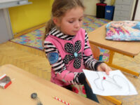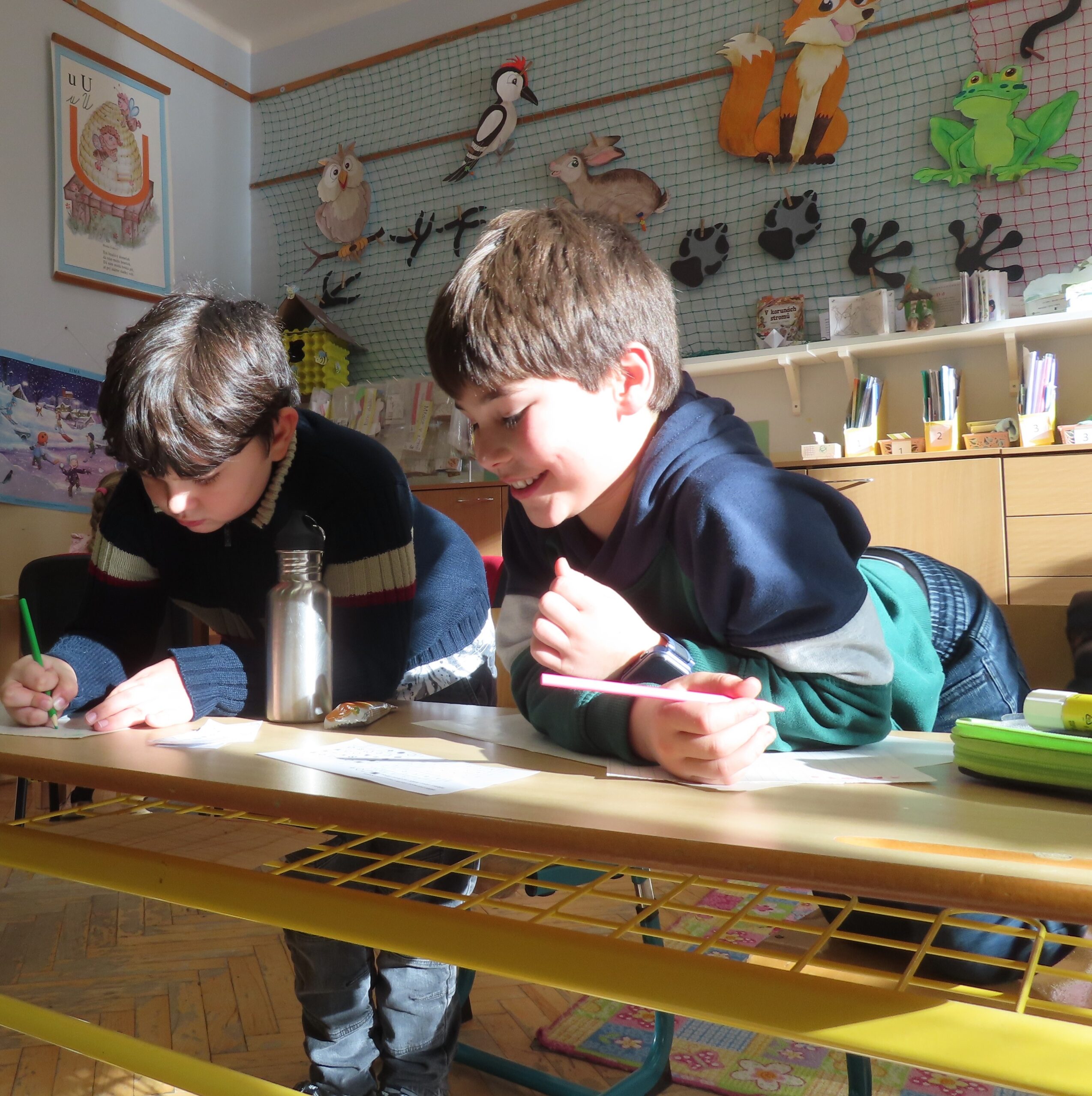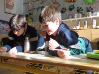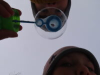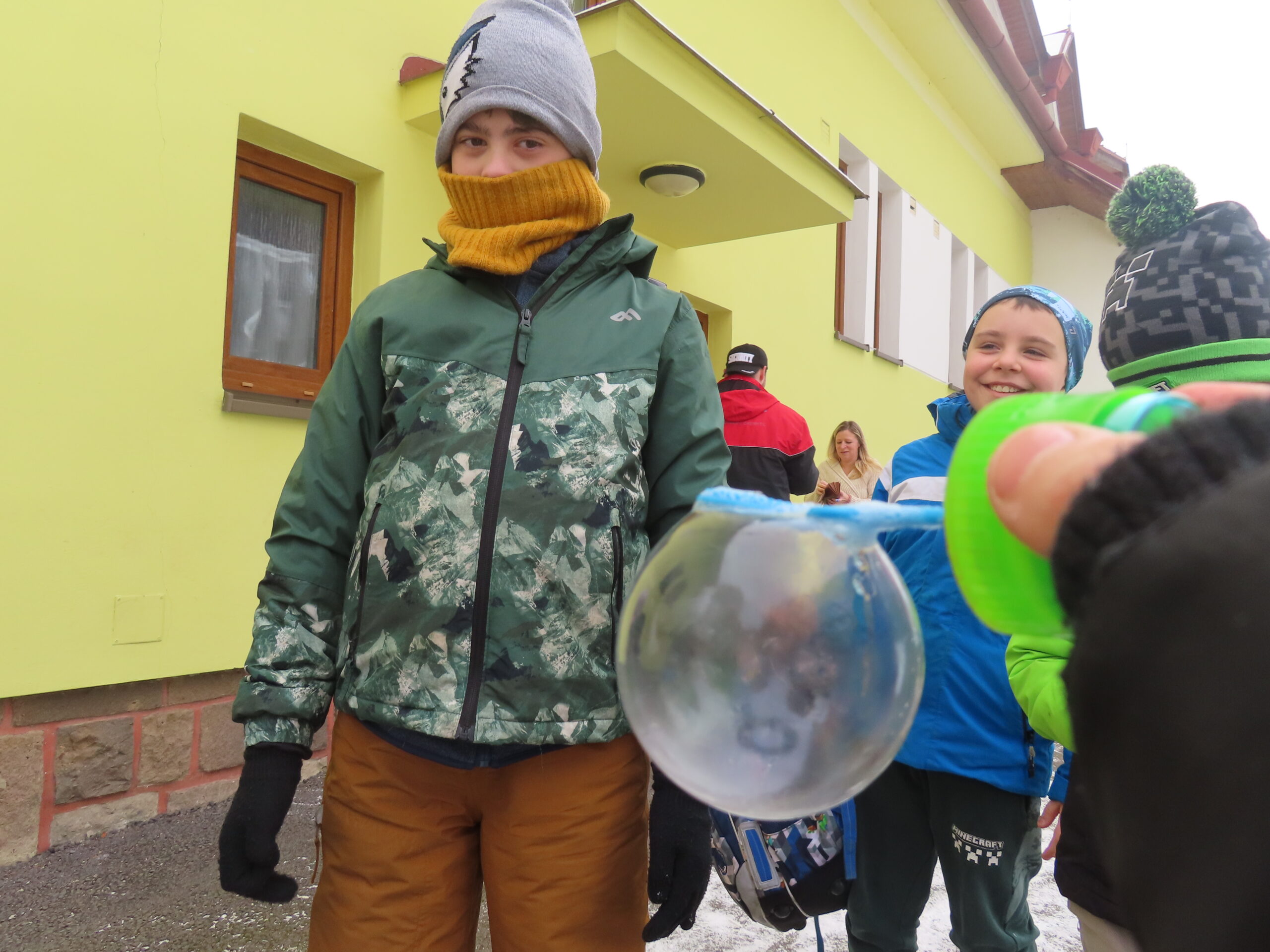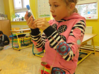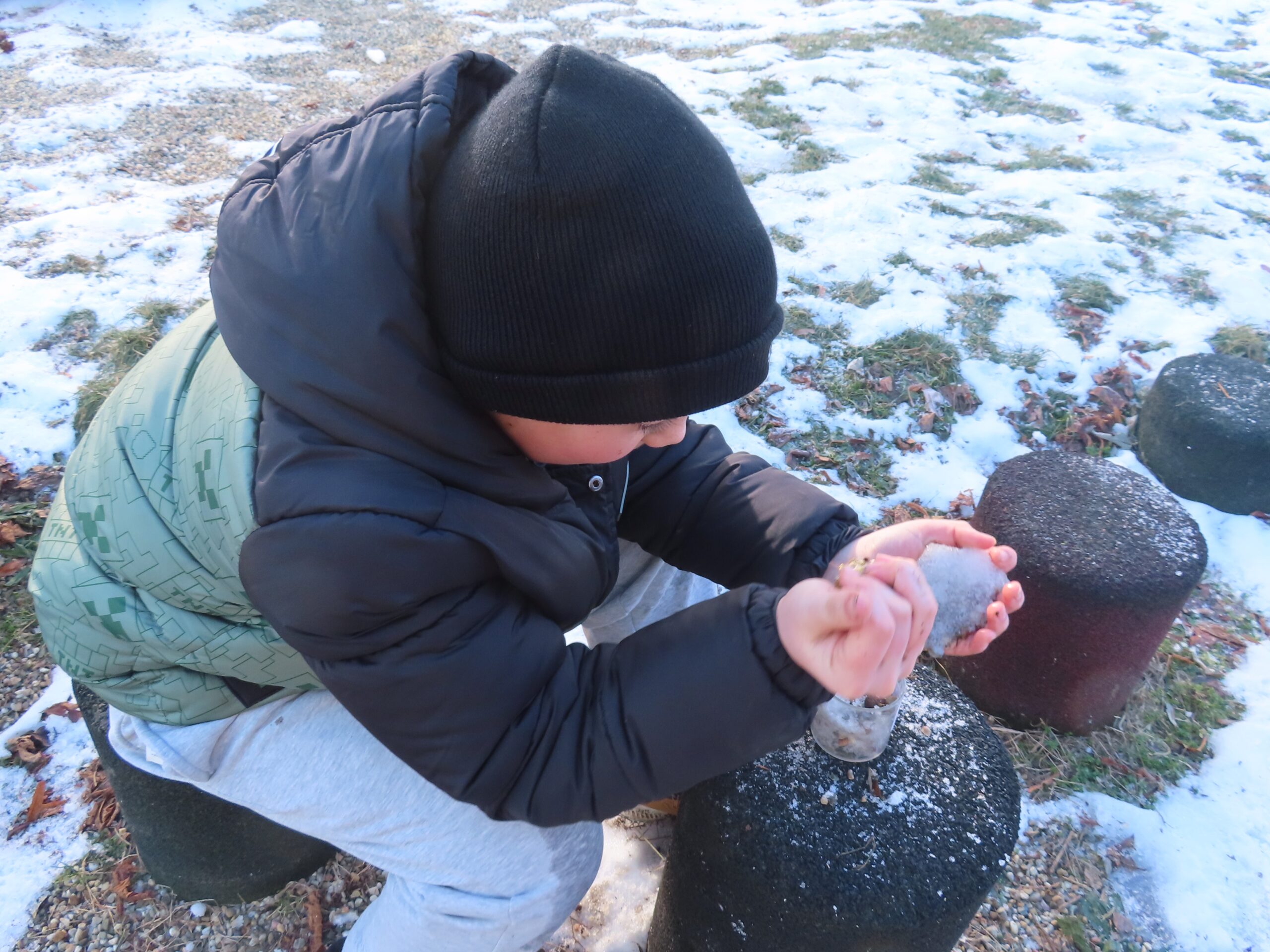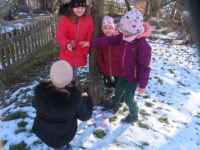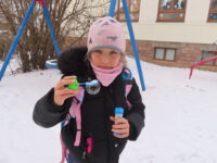 Na zahradě zase hledaly stopy zvířat a stříkačkou malovaly dopis svému pozorovanému stromu šťávou z červené řepy. Zajímavé bylo pozorování zamrzající bubliny. 🔍