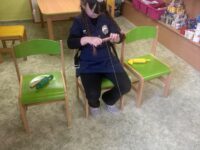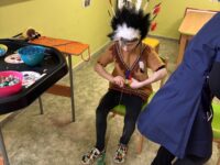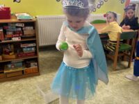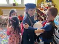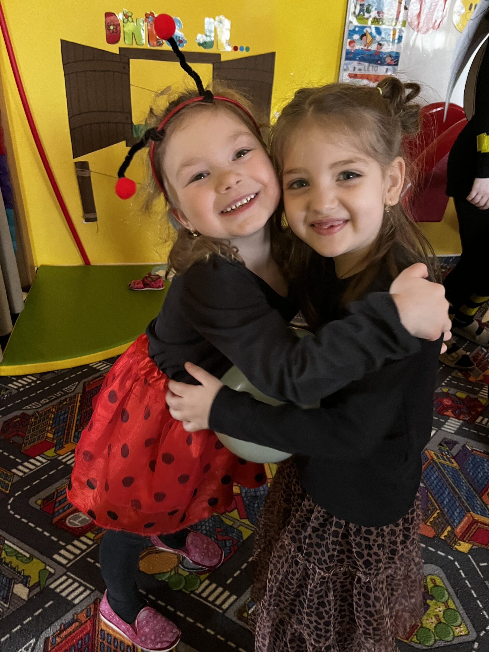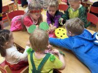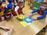 Po svačince následovalo slavnostní představení všech masek. Děti se postupně předvedly svým kamarádům a ukázaly, za koho se na jeden den proměnily. Jako poslední se představily paní učitelky, které se proměnily za včelky a pro děti si připravily překvapení v podobě včelího tanečku. Ten nejen zatančily, ale následně jej naučily i děti, takže si ho všichni společně s radostí zopakovali.